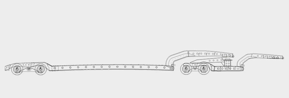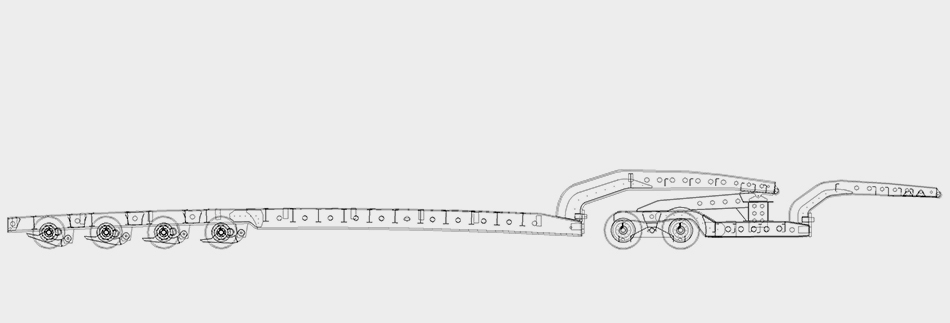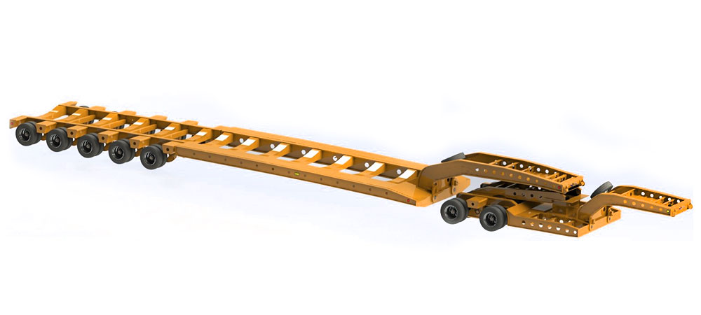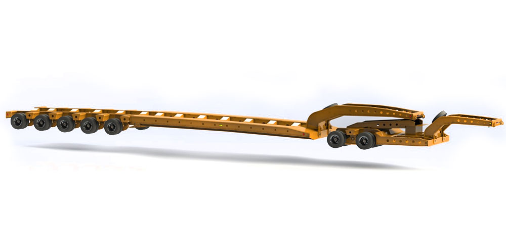 Este vehículo facilita el transporte de cargas hasta con 80 tons, incluyendo en su estructura un chasis tipo jeep para distribuir el peso de la carga.